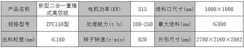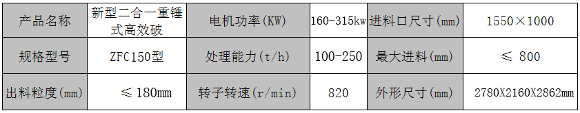 ZFC150型新型高效節(jié)能型二合一破碎機(jī)術(shù)參數(shù):
